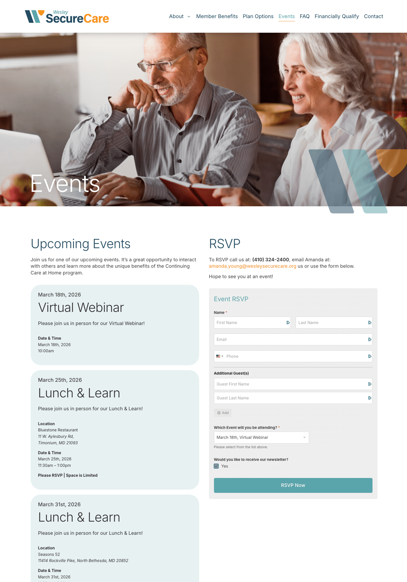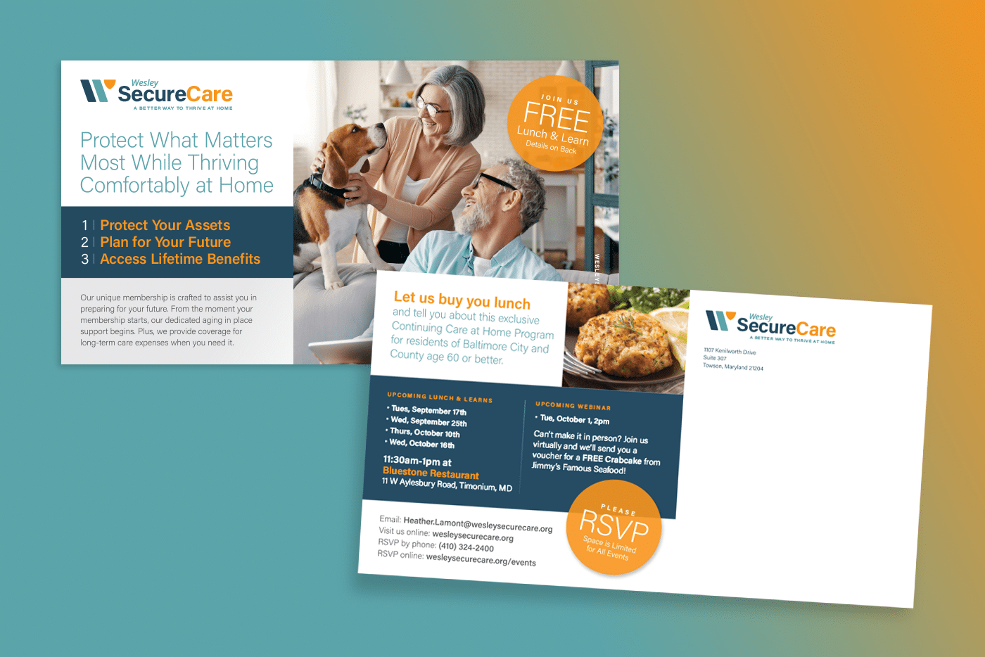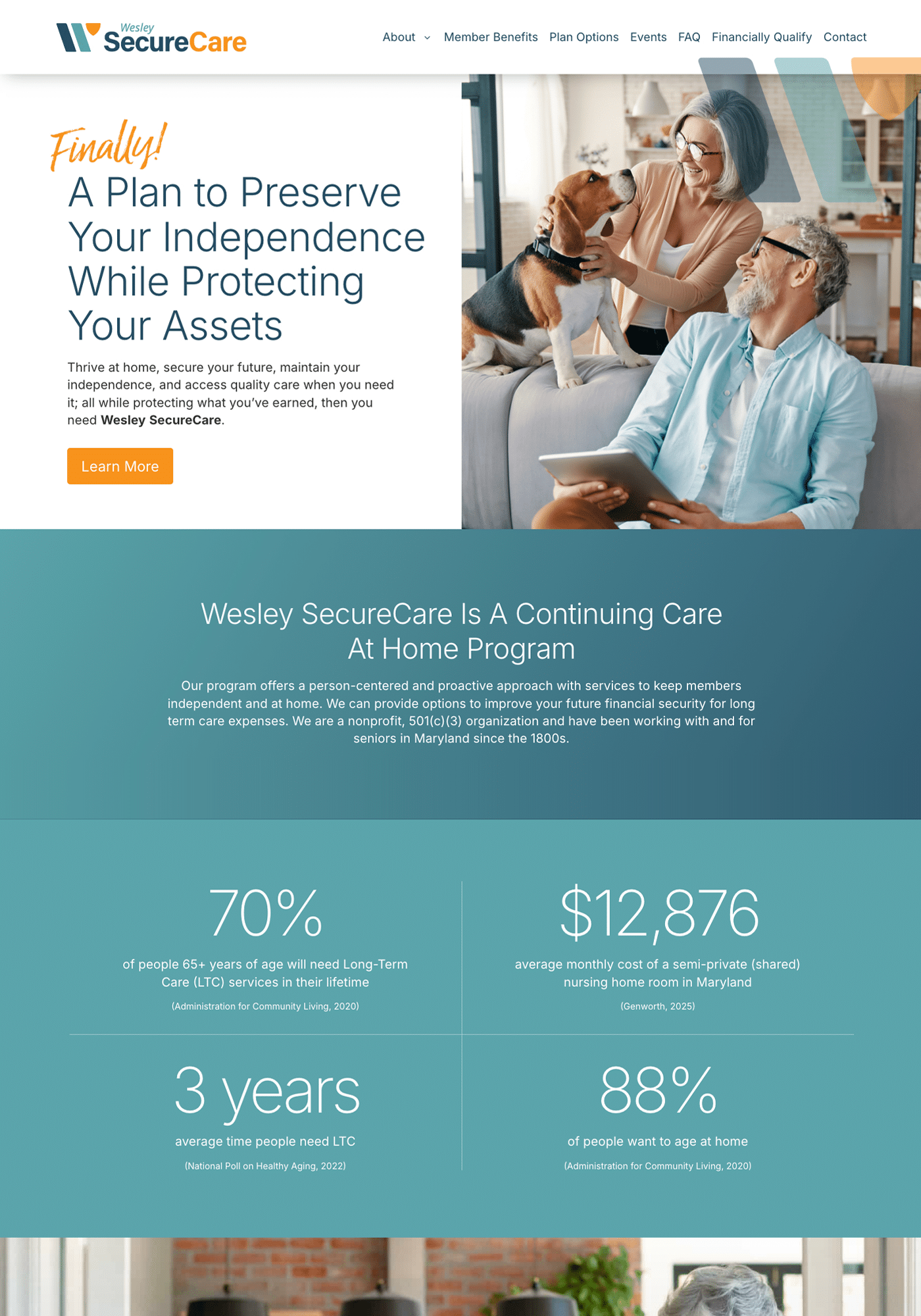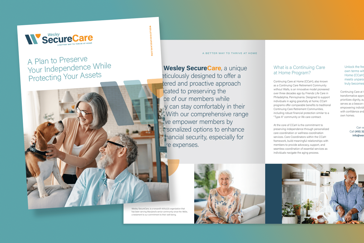 Caxton partnered with Wesley to create a brand for Wesley SecureCare that reflects what matters most: independence, security, and peace of mind. We positioned the program as a proactive, empowering choice, helping individuals remain in the comfort of home while confidently planning for future care. Every detail from messaging to visual identity was designed to feel warm, trustworthy, and reassuring. The result is a brand that speaks to dignity, stability, and the freedom to live life on your own terms, supported by a nonprofit with a long-standing legacy of care.